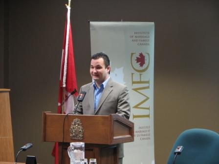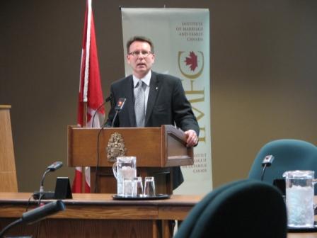 Rod Bruinooge, MP, the parliamentary sponsor of the briefing, introduces Rebecca Walberg and Andrea Mrozek